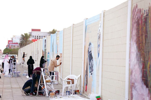 بدأت بالمنطقة الشرقية أعمال أطول جدارية وطنية بالمملكة تتضمن سيرة ملوك المملكة العربية السعودية منذ تأسيسها ومراحل نشأتها وتطورها بمشاركة 17فنانا وفنانة من مختصي الفن التشكيلي، وتأتي هذه المبادرة النوعية التي تنظمها بلدية الخبر بالتعاون مع فريق كانفش الفني تحت مسمى «جدارية هل العوجا» بطول200 م وارتفاع 3 م على شارع الأمير تركي بن عبدالله بكورنيش الخبر.