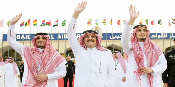 وصل - بحفظ الله - ورعايته خادم الحرمين الشريفين الملك سلمان بن عبدالعزيز آل سعود مساء أمس إلى الرياض قادماً من المنطقة الشرقية. وكان في استقبال خادم الحرمين الشريفين عند باب الطائرة بمطار قاعدة الملك سلمان الجوية، صاحب السمو الملكي الأمير فيصل بن بندر بن عبدالعزيز أمير منطقة الرياض. كما كان في استقبال الملك المفدى بساحة المطار، صاحب السمو الملكي الأمير محمد بن سعد بن عبدالعزيز، وصاحب السمو الأمير فيصل بن عبدالعزيز بن فيصل، وصاحب السمو الملكي الأمير محمد بن ناصر بن عبدالعزيز أمير منطقة جازان، وصاحب السمو الملكي الأمير سعود بن سعد بن عبدالعزيز، وصاحب السمو الأمير تركي بن عبدالله بن عبدالرحمن، وصاحب السمو الملكي الأمير نايف بن سعود بن عبدالعزيز، وصاحب السمو الملكي الأمير متعب بن عبدالله بن عبدالعزيز، وصاحب السمو الأمير الدكتور تركي بن سعود بن محمد رئيس مدينة الملك عبدالعزيز للعلوم والتقنية، وصاحب السمو الأمير أحمد بن عبدالله بن عبدالرحمن محافظ الدرعية، وصاحب السمو الأمير بندر بن سعود بن محمد المستشار في الديوان الملكي، وصاحب السمو الملكي الأمير عبدالعزيز بن سلمان بن عبدالعزيز وزير الدولة لشؤون الطاقة، وصاحب السمو الأمير عبدالمحسن بن عبدالله بن عبدالرحمن، وصاحب السمو الأمير عبدالرحمن بن محمد بن عياف الأمين العام لمجلس الوزراء، وصاحب السمو الأمير عبدالرحمن بن عبدالله بن فيصل محافظ المجمعة، وصاحب السمو الأمير بندر بن عبدالعزيز بن عياف، وصاحب السمو الأمير منصور بن ثنيان بن محمد، وصاحب السمو الأمير منصور بن محمد بن عبدالعزيز، وصاحب السمو الملكي الأمير بندر بن خالد الفيصل المستشار في الديوان الملكي، وصاحب السمو الملكي الأمير محمد بن عبدالرحمن بن عبدالعزيز نائب أمير منطقة الرياض، وصاحب السمو الأمير نايف بن بندر بن عياف، وصاحب السمو الملكي الأمير سلمان بن عبدالعزيز بن سلمان بن عبدالعزيز، وصاحب السمو الملكي الأمير خالد بن عبدالعزيز بن سلمان بن عبدالعزيز، وأصحاب الفضيلة والمعالي الوزراء وقادة القطاعات العسكرية. وقد وصل في معية خادم الحرمين الشريفين - حفظه الله - صاحب السمو الأمير خالد بن فهد بن خالد، وصاحب السمو الملكي الأمير منصور بن سعود بن عبدالعزيز، وصاحب السمو الملكي الأمير سعود بن عبدالمحسن بن عبدالعزيز المستشار الخاص لخادم الحرمين الشريفين، وصاحب السمو الملكي الأمير طلالبن سعود بن عبدالعزيز، وصاحب السمو الأمير خالد بن سعد بن فهد، وصاحب السمو الملكي الأمير خالد بن بندر بن عبدالعزيز مستشار خادم الحرمين الشريفين، وصاحب السمو الملكي الأمير الدكتور منصور بن متعب بن عبدالعزيز وزير الدولة عضو مجلس الوزراء مستشار خادم الحرمين الشريفين، وصاحب السمو الملكي الأمير سطام بن سعود بن عبدالعزيز، وصاحب السمو الملكي الأمير الدكتور خالد بن تركي بن عبدالعزيز، وصاحب السمو الملكي الأمير تركي بن محمد بن فهد بن عبدالعزيز المستشار في الديوان الملكي، وصاحب السمو الملكي الأمير سعود بن سلمان بن عبدالعزيز، وصاحب السمو الملكي الأمير تركي بن سلمان بن عبدالعزيز، وصاحب السمو الملكي الأمير عبدالله بن خالد بن سلطان بن عبدالعزيز المستشار في الديوان الملكي، وصاحب السمو الملكي الأمير نايف بن سلمان بن عبدالعزيز، وصاحب السمو الملكي الأمير عبدالمجيد بن عبدالإله بن عبدالعزيز، وصاحب السمو الملكي الأمير راكان بن سلمان بن عبدالعزيز، وصاحب السمو الملكي الأمير فيصل بن أحمد بن سلمان بن عبدالعزيز. كما وصل في معيته - رعاه الله - معالي وزير الدولة عضو مجلس الوزراء الدكتور مساعد بن محمد العيبان، ومعالي وزير الدولة عضو مجلس الوزراء رئيس الديوان الملكي الأستاذ خالد بن عبدالرحمن العيسى، ومعالي رئيس المراسم الملكية الأستاذ خالد بن صالح العباد، ومعالي رئيس الشؤون الخاصة لخادم الحرمين الشريفين الأستاذ حازم بن مصطفى زقزوق، ومعالي نائب السكرتير الخاص لخادم الحرمين الشريفين مساعد رئي