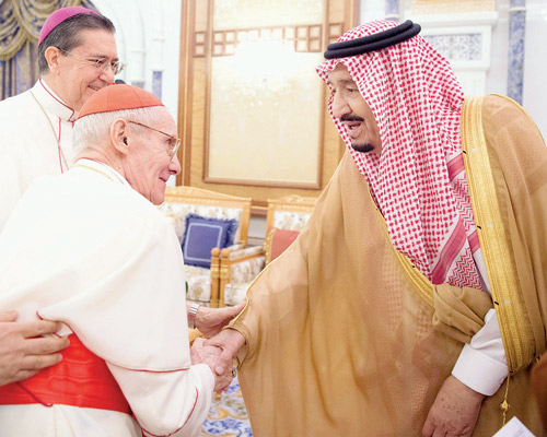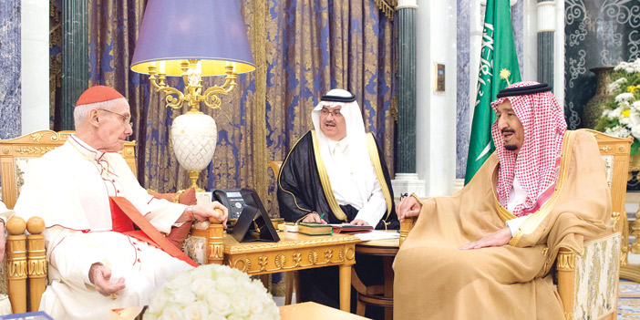استقبل خادم الحرمين الشريفين الملك سلمان بن عبدالعزيز آل سعود -حفظه الله- في مكتبه بقصر اليمامة في الرياض أمس رئيس المجلس البابوي للحوار بين الأديان في دولة الفاتيكان الكاردينال جان لويس توران، والوفد المرافق له.