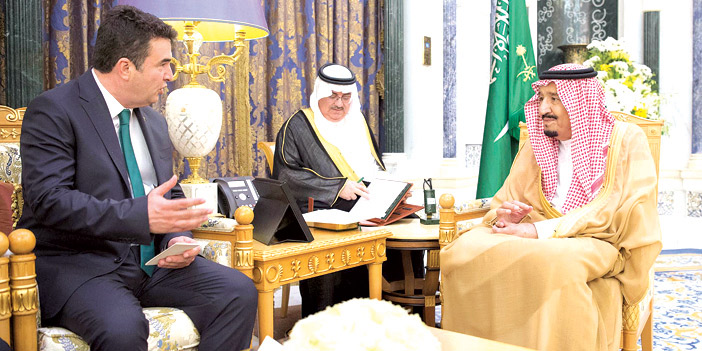استقبل خادم الحرمين الشريفين الملك سلمان بن عبدالعزيز آل سعود -حفظه الله- في مكتبه بقصر اليمامة في الرياض أمس، رئيس اللجنة الفرعية لشراكات حلف شمال الأطلسي متين لطفي بيدر، يرافقه عدد من رؤساء الوفود البرلمانية في حلف شمال الأطلسي.
