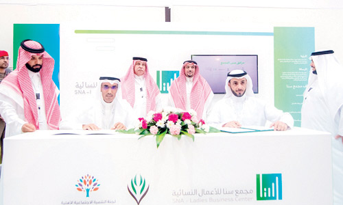 كما شهد سموه توقيع مذكرة تفاهم بين الهيئة العامة للمنشآت الصغيرة والمتوسطة ويمثلها المهندس صالح الرشيد، ومجمع سنا للأعمال النسائية بمدينة بريدة ويمثله رئيس مجلس الإدارة الدكتور أحمد الكبيّر، على أن يكون التنسيق بينهما فيما يخص التدريب وتزويد الطرف الثاني بالحقائب التدريبية، وتبادل الخبرات، والاستفادة القصوى من الخدمات المقدمة من كلا الطرفين لرائدات الأعمال وكافة الجوانب التوعوية، والمبادرات التي تخدمهن.
