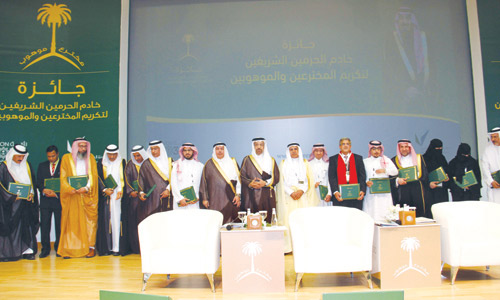بدوره أوضح أمين عام الجائزة الدكتور عبدالرحمن بن إبراهيم العبد العالي، في كلمته أن استحداث جائزة خادم الحرمين الشريفين لتكريم المخترعين والموهوبين جاء إيماناً وتأكيداً من القيادة الرشيدة على أهمية إبراز المواهب والقدرات وتكريمها تقديراً لإنجازاتهم وتنمية روح الإبداع والابتكار لدى أفراد المجتمع، مبيناً أن الأمانة العامة للجائزة تسلمت من خلال الرابعة 159 طلباً بفئة المخترعين، و253 طلباً بفئة الموهوبين لجميع الفئات العمرية، اعتمد منها بعد استكمال الفحص والتصنيف والتحكيم أربع براءات اختراع بمشاركة ستة عشر مخترعاً لفئة المخترعين، وثلاث فائزات للفئة العمرية (وما دون 18 عاماً) وفائزتين للفئة العمرية (وما بين 18 - 25 عاماً) وفائزاً واحداً للفئة العمرية (ما فوق 25 عاماً) لفئة الموهوبين، مهنئاً الفائزين والفائزات من مخترعين وموهوبين.