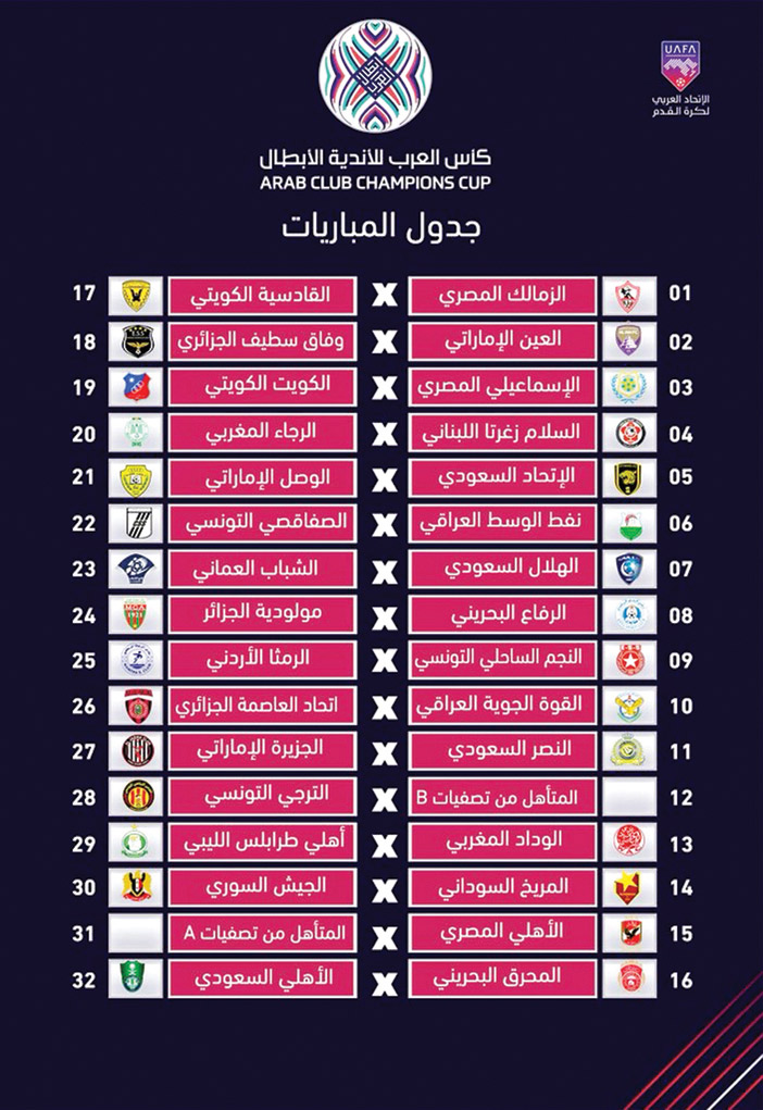 أوقعت قرعة الدور الـ32 من كأس العرب للأندية الأبطال، التي سحبت أمس في جدة،