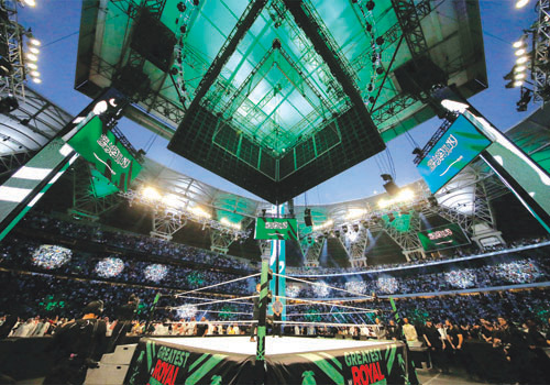 شهدت مدينة جدة أمس إقامة أحداث ومنافسات WWE على استاد مدينة الملك عبدالله الرياضية «الجوهرة»، وسط حضور جماهيري كبير ملأ جنبات الاستاد تجاوز 45 ألف متفرج، حيث توج معالي رئيس مجلس إدارة الهيئة العامة للرياضة تركي آل الشيخ، النجم «برون سترومان» بكأس وحزام بطولة المملكة «أعظم رويال رامبل»، بعد دخوله في منافسة مع 50 نجمًا عالميًّا. وألقى معالي رئيس مجلس الإدارة تركي آل الشيخ كلمة في افتتاح هذا الحدث الرياضي الكبير، عبر خلالها عن سعادته بإقامة حدث عالمي بهذا الحجم، مشيرًا إلى قدرة المملكة العربية السعودية على تنظيم أكبر وأشهر الأحداث الرياضية العالمية، وأضاف: «اليوم نحقق نجاحًا جديدًا وفريدًا من نوعه ولله الحمد، باستضافة العديد من الأحداث الأشهر، التي تحظى باهتمام كثير من السعوديين، واليوم تتواصل النجاحات بإقامة منافسات WWE في المملكة لمدة 10 سنوات وبشكل حصري، ولم يحدث هذا إلا بدعم كبير ومتواصل من قبل القيادة الرشيدة»، وأعلن معاليه إقامة حدث آخر لمنافسات WWE في العاصمة الرياض نوفمبر المقبل؛ تفعيلاً لهذه الاتفاقية.