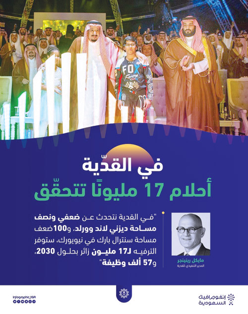 ويمثل تدشين القدية تحقيقاً لهدف استراتيجي رئيسي للملك وولي عهده بأن يكون للترفيه والرياضة والثقافة دور رئيسي في رسم مستقبل المملكة.