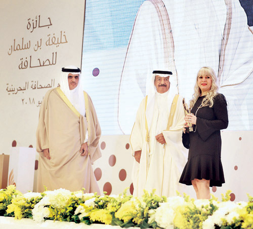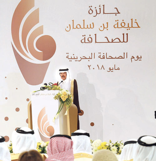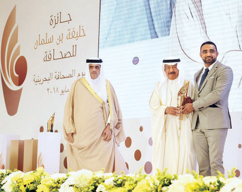 وكان صاحب السمو الملكي رئيس الوزراء بمملكة البحرين قد تفضل فشمل برعايته الكريمة وحضوره الحفل الذي أقامته وزارة شؤون الإعلام صباح أمس بفندق الريتز كارلتون بمناسبة يوم الصحافة البحرينية، والذي تم خلاله تكريم الفائزين بجائزة «خليفة بن سلمان للصحافة»، في نسختها الثالثة.