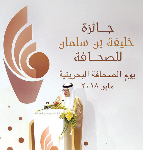 لدى تفضل سموه بتكريم الفائزين بجائزة «خليفة بن سلمان للصحافة»، حيا صاحب السمو الملكي الأمير خليفة بن سلمان آل خليفة رئيس الوزراء بمملكة البحرين، جهود وعطاءات رجالات الصحافة البحرينية، وما يقدموه من إبداع مستنير في خدمة الوطن، والنهوض بالمجتمع، من خلال التمسك الثابت بأمانة الكلمة المسئولة وإدراك تأثيرها العميق في مسار حياة الأمم والشعوب.