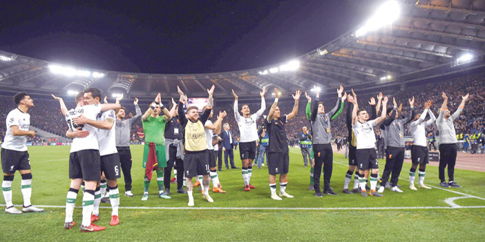 واصل ليفربول الإنجليزي حلمه نحو التتويج ببطولة دوري أبطال أوروبا للمرة السادسة في تاريخه والأولى منذ 13 عاما، عقب تأهله للمباراة النهائية، رغم خسارته 2 / 4 أمام مضيفه روما الإيطالي في إياب الدور قبل النهائي للبطولة، واستفاد ليفربول من فوزه الكبير ذهابا 5 / 2 على روما الأسبوع الماضي، ليفوز 7 / 6 في مجموع مباراتي الذهاب والعودة، ويحجز بطاقة التأهل للمباراة النهائية للمرة الأولى منذ عام. 2007 بادر النجم السنغالي ساديو ماني بالتسجيل لليفربول مبكرا في ق 9، قبل أن يتعادل روما بهدف جاء عبر النيران الصديقة، بعدما أحرز جيمس ميلنر لاعب ليفربول هدفا بالخطأ في مرمى فريقه ق15 لم يهنأ روما بتعادله كثيرا، بعدما أعاد الهولندي جورجينهو فاينالدوم التقدم مجددا لليفربول ق 25، فيما أضاف البوسني إيدين دزيكو هدف التعادل لروما ق 52، وتكفل البلجيكي رادجا ناينجولان بتسجيل الهدفين الثالث والرابع لروما في ق 87 والثالثة من الوقت المحتسب بدلا من الضائع من ركلة جزاء، وبات ليفربول، الذي تلقى خسارته الأولى في النسخة الحالية للبطولة أولفريق انجليزي يتأهل للمباراة النهائية في المسابقة القارية منذ ستة أعوام. وبذلك ضرب ليفربول موعدا في المباراة النهائية التي ستقام بالعاصمة الأوكرانية كيير 26 مايو الجاري، مع ريال مدريد الإسباني، صاحب الرقم القياسي في عدد مرات الفوز بالبطولة برصيد 12 لقبا، ليعيدا إلى الأذهان لقاءهما في نهائي البطولة عام 1981، الذي حسمه الفريق الانجليزي لصالحه.