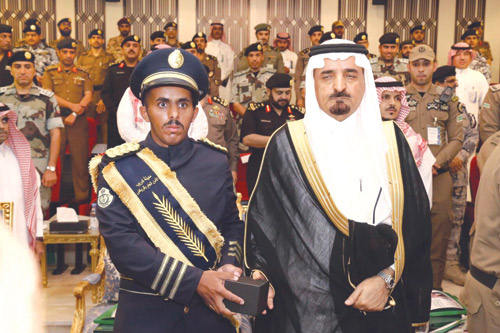 نيابة عن وزير الداخلية رعى مساعد وزير الداخلية لشؤون العمليات المشرف على الأمن العام معالي الفريق أول سعيد بن عبدالله القحطاني أمس حفل بتخريج الدورات التأهيلية بمدينة تدريب الأمن العام بمنطقة الرياض. وبدئ الحفل بالقرآن الكريم ثم كلمة مساعد مدير الأمن العام لشؤون التدريب اللواء محمد الشريف الذي أكد من خلالها أن الطلبة أمضوا عامًا دراسيًا تلقوا من خلاله مختلف المعارف التي سوف تساهم في قيامهم على الوجه الأكمل للأعمال المناطة لهم خلال مباشرتهم مهامهم العملية مبياً أن جهود وزير الداخلية في دعم مدن التدريب بكافة المتطلبات التي من شأنها تساهم في رفع كوادر وقدرات رجال الأمن، بعد ذلك كلمة للخريجين ثم بعد ذلك نفذ الخريجون العرض العسكري وتخلله التشكيلات الميدانية وتشكيل معًا ضد الإرهاب، وبعده تشكيل صقر الأمن، وفي سياق البرنامج نفذ الطلبة الخريجون مجموعة من المهارات العسكرية منها تشكيل «سلمان» ثم تم تنفيذ الفرضية الأمنية المشتركة لمعاهد التدريب وبعده تشكيلات عسكرية ثم تشكيل قصر المصمك وتشكيل شعار الوطن «السيفين والنخلة والميزان» ثم بعد ذلك أداء الخريجين البالغ عددهم اكثر من 700 طالب عسكري قسم الولاء والطاعة وبعده إعلان النتيجة العامة للدورات وتكريم المتفوقين وكذلك تكريم الجهات المتعاونة مع شؤون التدريب وكذلك كرم معالي الفريق الإدارات المتميزة من الدوريات الأمنية بمناطق المملكة.