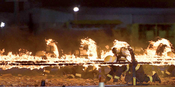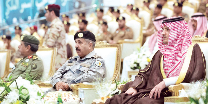 بعد ذلك ألقى معالي مدير الدفاع المدني كلمة أوضح فيها أن عدد الملتحقين بالدورة التأهيلية التي استمرت عاماً دراسياً كاملاً بلغ 1500 طالب حصلوا على جميع المعارف العلمية والعملية عبر منظومة من برامج التأهيل الفني والعسكري والمسلكي والفكري بالإضافة إلى التوجية المعنوي. وأفاد أن الدفاع المدني يشهد توسعاً في برامجه التدريببة والتأهيلية، وذلك من خلال برامج نوعية للتأهيل في الدراسات العليا لنيل درجات الماجستير والدكتوراه التخصصية، وهو ما توافق أيضاً مع تطوير البنى التحتية في معهد الدفاع المدني ومراكز تدريب الدفاع المدني بالمناطق. ثم ألقى الطالب الخريج أحمد الثبيتي كلمة الخريجين أكد فيها جاهزيتهم للانضمام لزملائهم في ميادين العمل. إثر ذلك قدّم الخريجون عرضاً لعدد من المهارات والتطبيقات العملية منها مهارة قوة التحمّل والجهد العالي, وحوادث المركبات, والإنقاذ من حوادث السيول والأمطار والآبار, ومهارات النزول بالحبال من المباني العالية, والتعامل مع حالات الاحتجاز في العربات المعلقة كالتلفريك وعربات الألعاب الهوائية في المدن الترفيهية, وحوادث المواد الخطرة وانهيارات المباني وحرائق المواد البترولية, وحرائق المباني السكنية، وقوة التحمّل ومهارات الإنقاذ والإطفاء وإخلاء المصابين والتعامل مع حوادث الحرائق البترولية وحوادث المركبات والصعود إلى الأبراج واستخدام السلالم وأعمال الإنقاذ في حوادث الآبار والمباني العالية، إلى جانب مباشرة حوادث تسرّب المواد الخطرة في المنشآت الصناعية، وحوادث انهيارات المباني. تلا ذلك عرضاً عسكرياً للخريجين، ثم أداء القسم، وإعلان نتيجة الدورة . بعدها كرّم سمو وزير الداخلية أوائل خريجي الدورة التأهيلية على أعمال الدفاع المدني . ثم تسلّم سموه هدية تذكارية بهذه المناسبة قدمها معالي مدير الدفاع المدني .