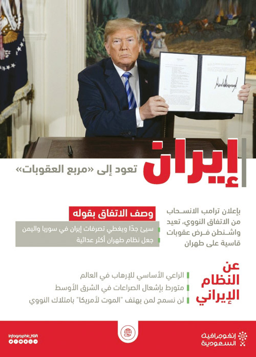 في الوقت الذي تضيق فيه الخيارات أمام إيران، ارتفعت حدة «تحذيرات» الرئيس الأمريكي دونالد ترامب لها، حيث قال إن على إيران أن تتفاوض وإلا «سيحدث شيء ما». وفي الوقت الذي لم تتضح فيه الإجراءات التي سيتم اتخاذها، حذر ترامب إيران من عواقب وخيمة جداً في حال استأنفت برنامجها النووي. وعلق ترامب أمس الأربعاء في رده على الصحفيين بشأن ما ستقوم به الولايات المتحدة في حال استأنفت إيران مساعيها النووية، هدد ترمب بقوله: ستكتشف إيران ذلك، ومضى في القول: «أنصح الإيرانيين بعدم إعادة العمل ببرنامجهم النووي.. أنصحهم بذلك بقوة».