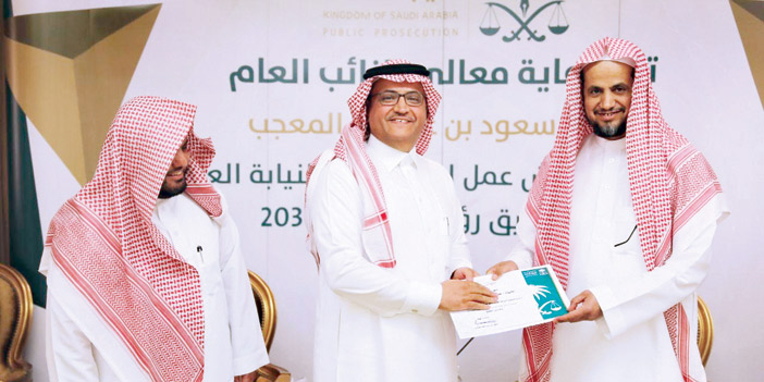 وألقى النائب العام كلمة في ختام الحفل أشاد فيها بما تلقاه النيابة من دعم ومتابعة من خادم الحرمين الشريفين الملك سلمان وولي عهده الأمين قائد الرؤية وربانها الأمير محمد بن سلمان، مشيدًا بما تحمله رؤية المملكة من أهداف إستراتيحية شملت كل المجالات ومنها ما يخص الجانب العدلي والذي يجب أن يكون للنيابة العامة دور أساسي في تحقيقه ولاسيما ما يخص مكافحة الفساد وتوفير الضمانات الحقوقية والعمل على حماية الفرد والأسرة. وذكر معالي النائب العام أن تبني البرامج التدريبية الخاصة بآليات تحقيق رؤية المملكة في المرفق النيابي من أجل الرفع بالمبادرات والمشاريع التي تم تبنيها في النيابة العامة ونسعى حاليًا لاستكمال إجراءات الرفع بها للجهات المختصة للنظر في إدراجها ضمن رؤية المملكة 2030.