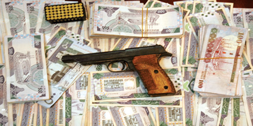 فقد عَمِدَتْ الجهة المختصة بشرطة المنطقة إلى دراسة البلاغات وحصر الأنماط والأساليب الإجرامية وتحليلها واتخاذ كافة الإجراءات اللازمة للقبض على الجناة، حيث أشارت الدلائل إلى ضلوع تشكيل عصابي مكون من (6) أشخاص بينهم امرأة خلف تلك الحوادث، وأسفرت الجهود من الإطاحة بهم (خمسة مواطنين ونازح - تراوحت أعمارهم بين العقدين الثالث والرابع) امتهنوا سرقة المنازل وسلب المركبات واستخدامها في عمليات السطو وإطلاق النار وضبط بحوزتهم مبالغ مالية جاوزت (88.000) ريال بينها عملات أجنبية وأوراق نقدية مزيفة مجهولة المصدر وعدد (9) أسلحة نارية متنوّعة وعدد (316) ذخيرة حيّة وعدد (2) صاعق كهربائي وعدد (3) أجهزة اتصال لا سلكية وعدد (51) جهاز جوال مختلفة وأجهزة إلكترونية متعددة الأنواع, وبمباشرة إجراءات الاستدلال الأولية بحقهم أقروا بارتكابهم لـ (11) حادثة مماثلة، جرى إيقافهم وإشعار فرع النيابة العامة بالمنطقة لإكمال اللازم حسب الاختصاص.
