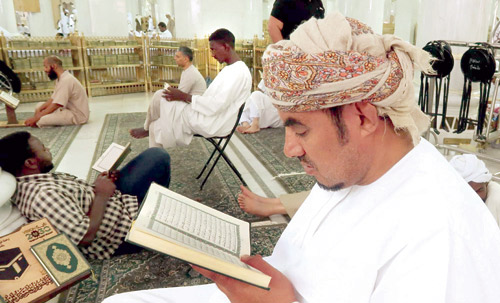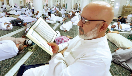 يقضي رواد المسجد الحرام أوقاتهم بين قائم يصلي وتالٍ للقرآن الكريم وطائف وساعٍ وذاكر لله ومسارع للخيرات لخدمة قاصدي البيت العتيق في أجواء مفعمة بالروحانية والطمأنينة والأمن والأمان. واستفاد قاصدو المسجد الحرام من توجيه خادم الحرمين الشريفين بتزويد المسجد الحرام بـ 300 ألف نسخة من القرآن الكريم من إصدار مجمع الملك فهد لطباعة المصحف الشريف في المدينة المنورة. وحرصت الرئاسة العامة لشؤون المسجد الحرام والمسجد النبوي على توفير آلاف النسخ من القرآن الكريم بترجمات متعددة ووضعها على 4170 من الرفوف والدواليب موزعة في أرجاء المسجد الحرام التي تستوعب مختلف الأحجام تحت إشراف لجان متخصصة لمتابعة الأرفف وسلامة المصاحف منها الإنجليزية والفرنسية والمليبارية والبوسنية والأردية والإندنوسية وغيرها من اللغات، إضافة إلى توفير نسخ عديدة من المصحف الشريف بطريقة برايل.
