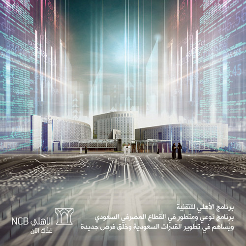 أطلق البنك الأهلي برنامج توظيف متخصص في التقنية والتكنولوجيا تحت مسمى «برنامج الأهلي للتقنية» يساهم في تطوير القدرات السعودية في مجالات تقنية وأمن ونظم المعلومات والمصرفية الذكية كجزء من مبادراته لتعزيز مكانته باعتباره الخيار الأول للموظفين في قطاع صناعة الخدمات المالية؛ وتعزيزاً لهدفه الإستراتيجي للارتقاء ببيئة عمله الداخلية لتكون الأفضل في استقطاب المواهب الوطنية الشابة.