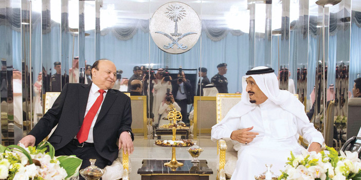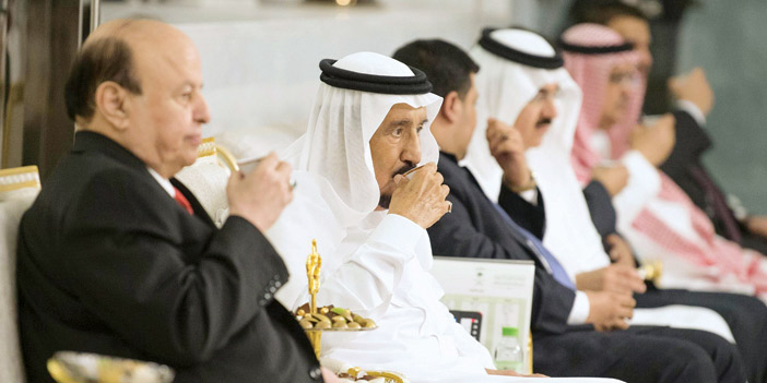 استقبل خادم الحرمين الشريفين الملك سلمان بن عبدالعزيز آل سعود - حفظه الله - في جدة مساء أمس، فخامة الرئيس عبدربه منصور هادي رئيس الجمهورية اليمنية. وقد تناول الجميع طعام السحور مع خادم الحرمين الشريفين - رعاه الله -. حضر الاستقبال والمأدبة، صاحب السمو الملكي الأمير فيصل بن بندر بن عبدالعزيز أمير منطقة الرياض، وصاحب السمو الملكي الأمير منصور بن سعود بن عبدالعزيز، وصاحب السمو الملكي الأمير فهد بن سلطان بن عبدالعزيز أمير منطقة تبوك، وصاحب السمو الأمير خالد بن سعد بن فهد، وصاحب السمو الملكي الأمير فيصل بن خالد بن عبدالعزيز أمير منطقة عسير، وصاحب السمو الملكي الأمير سطام بن سعود بن عبدالعزيز، وصاحب السمو الملكي الأمير سعود بن نايف بن عبدالعزيز أمير المنطقة الشرقية، وصاحب السمو الأمير جلوي بن عبدالعزيز بن مساعد أمير منطقة نجران، وصاحب السمو الملكي الأمير الدكتور فيصل بن مشعل بن سعود بن عبدالعزيز أمير منطقة القصيم، وصاحب السمو الملكي الأمير الدكتور حسام بن سعود بن عبدالعزيز أمير منطقة الباحة، وصاحب السمو الملكي الأمير عبدالعزيز بن سعد بن عبدالعزيز أمير منطقة حائل، وصاحب السمو الملكي الأمير فيصل بن سلمان بن عبدالعزيز أمير منطقة المدينة المنورة، وصاحب السمو الملكي الأمير محمد بن عبدالرحمن بن عبدالعزيز نائب أمير منطقة الرياض، وصاحب السمو الملكي الأمير بدر بن سلطان بن عبدالعزيز أمير منطقة الجوف، وصاحب السمو الملكي الأمير عبدالله بن بندر بن عبدالعزيز نائب أمير منطقة مكة المكرمة.