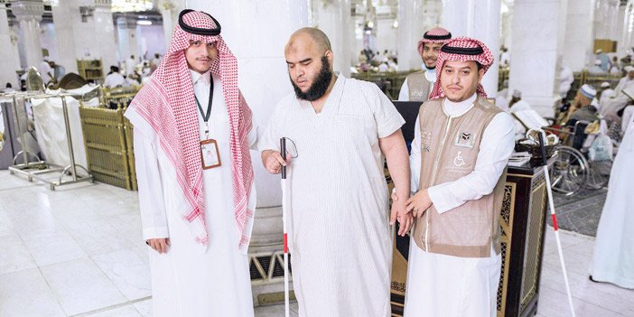 قامت وحدة ذوي القدرات الخاصة بالرئاسة العامة لشئون المسجد الحرام والمسجد النبوي بمبادرة توزيع العصا البيضاء للمكفوفين ذوي الإعاقة البصرية بالمصلى الخاص بهم في توسعة الملك فهد. وأفاد مدير وحدة ذوي القدرات الخاصة فيصل الجودي أن المبادرة, تأتي ضمن سلسلة مبادرات تقوم بها الوحدة في الشهر المبارك، بمتابعة وتوجيه من معالي الرئيس العام لشئون المسجد الحرام والمسجد النبوي الشيخ الدكتور عبد الرحمن بن عبد العزيز السديس، وفق تطلعات ولاة الأمر -حفظهم الله- لتقديم أرقى الخدمات لقاصدي المسجد الحرام وخدمة لفئة غالية في المجتمع.