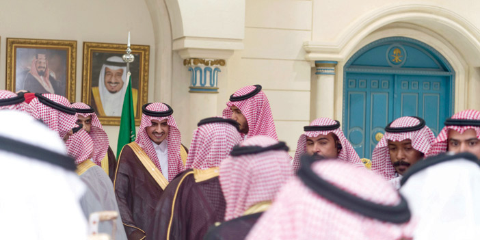 استقبل أمير منطقة الجوف صاحب السمو الملكي الأمير بدر بن سلطان بن عبدالعزيز أمس الأول بصالة الاستقبال الكبرى بقصر سموه بمدينة سكاكا جموعًا من المواطنين وشيوخ القبائل والأعيان الذين قَدِموا للسلام على سموه. كما استقبل أصحاب الفضيلة رؤساء المحاكم الشرعية والإدارية والقضاة وقادة القطاعات العسكرية وكبار المسؤولين من مدنيين وعسكريين، واستمع لمطالب المواطنين التي تحظى باهتمام ومتابعة سموه. بعد ذلك تناول الجميع طعام العشاء على مائدة سموه. حضر الاستقبال وكلاء الإمارة ومحافظو المحافظات ورؤساء المراكز.