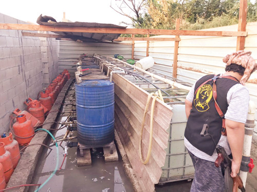 أعلن المتحدث الإعلامي بفرع الإدارة العامة للمجاهدين بالمنطقة الشرقية أن قوة الطوارئ والدوريات بالمجاهدين، بالتنسيق والمشاركة مع إدارة مكافحة المخدرات بمحافظة القطيف، تمكنت أمس الأول من القبض على (4) أشخاص من المقيمين بعد توافر الأدلة على قيامهم بتصنيع الخمور بإحدى المزارع في محافظة القطيف. وأسفرت إجراءات تفتيش المزرعة عن ضبط معمل متكامل لتصنيع الخمور، به أكثر من تسعين ألف لتر من الخمور مهيأة للترويج، إضافة إلى معدات وأدوات مختلفة، تُستخدم في تصنيع الخمور. وقد تم إحالة المقبوض عليهم والمضبوطات للجهات المختصة.