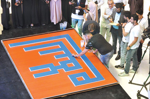 دخلت الجمعية العربية السعودية للثقافة والفنون موسوعة غينيس للأرقام القياسية ببناء أكبر لوحة للخط العربي الكوفي في العالم بعدد 8083 مكعباً من مكعبات الـ«ليغو». وأعرب مدير المشروع مستشار رئيس مجلس الإدارة المتحدث الرسمي باسم الجمعية العربية السعودية للثقافة والفنون عبدالله بن محمد العقلاء بهذه المناسبة عن اعتزازه بهذا الإنجاز الذي يسجل باسم المملكة العربية السعودية، منوها بالدعم الذي حظي به المشروع من رئيس مجلس إدارة الجمعية العربية السعودية للثقافة والفنون الدكتور عمر بن عبدالعزيز السيف. من جانبها أوضحت مساعدة مدير المشروع رئيسة قسم التصوير التشكيلي في فرع الجمعية بالرياض الفنانة التشكيلية مها الطلحة، أن التخطيط والتدريب لهذا العمل استغرق 23 يوماً.