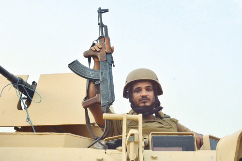 رصدت وكالة الأنباء السعودية هيبة الجنود الأشاوس من منسوبي القوات المسلحة السعودية المرابطين على الخطوط الأمامية في الحد الجنوبي بمنطقة جازان, وسط حالة إقدام، ورباطة جأش، وشجاعة متناهية في هذه الأيام المباركة من أجل حماية الوطن ومقدساته، والعمل على تحقيق أمنه واستقراره؛ لينعم مواطنوه ومَن يعيش على أرض المملكة بالسلامة والاطمئنان.