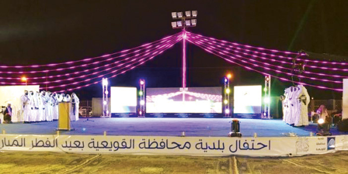 رعى محافظ القويعية مساعد بن عبد الرحمن السالم احتفال أهالي المحافظة بمناسبة عيد الفطر المبارك، الذي تنظمه بلدية محافظة القويعية والمقام بمركز احتفالات البلدية.