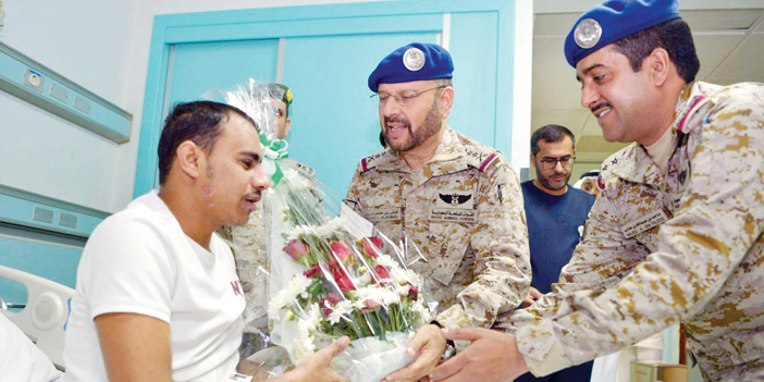 نقل معالي رئيس هيئة الأركان العامة الفريق أول الركن فياض بن حامد الرويلي، تهاني وتبريكات خادم الحرمين الشريفين الملك سلمان بن عبدالعزيز آل سعود القائد الأعلى لكافة القوات العسكرية، وصاحب السمو الملكي الأمير محمد بن سلمان بن عبدالعزيز ولي العهد نائب رئيس مجلس الوزراء وزير الدفاع –حفظهما الله– بمناسبة عيد الفطر المبارك، إلى منسوبي القوات المسلحة في المنطقة الجنوبية (خميس مشيط وجازان ونجران). كما زار معاليه مصابي القوات المسلحة، مقدمًا لهم التهاني بمناسبة عيد الفطر ومثمنًا التضحيات التي يقدمونها للذود عن هذا الوطن المبارك. وألقى معاليه كلمة بهذه المناسبة قال فيها : «إخواني وزملائي منسوبي المنطقة الجنوبية، أتشرف بوجودي بينكم في هذا الموقع من مواقع العزة والشرف لأنقل لكم مباركة وتحيات وفخر واعتزاز خادم الحرمين الشريفين القائد الأعلى لكافة القوات العسكرية، وصاحب السمو الملكي ولي العهد نائب رئيس مجلس الوزراء وزير الدفاع -حفظهما الله-. وأضاف معاليه: أهنئكم بحلول عيد الفطر المبارك وأسأل الله أن يتقبل صالح أعمالكم، ونبارك لنا جميعًا ما يتحقق من تقدم وانتصارات على جميع محاور القتال». وأكد معاليه أن النصر قادم بتوفيق الله أولاً ثم بهمم أبطال القوات المسلحة، الرجال الذين يقفون سدًا منيعًا بوجه كل من تسول له نفسه المساس ببلاد الحرمين وبعقيدتنا ومكتسباتنا وأمن واستقرار المنطقة على وجه العموم. وفي ختام كلمة معاليه سأل الله تعالى أن يديم على بلادنا أمنها وأمانها في ظل قيادتنا الرشيدة. كما قام معالي رئيس هيئة الأركان العامة الفريق الأول الركن فياض بن حامد الرويلي، بزيارة مصابي القوات المسلحة في عمليتي عاصفة الحزم وإعادة الأمل بمدينة الأمير سلطان الطبية العسكرية بالرياض. ونقل معاليه خلال زيارته للمصابين تحيات وتقدير خادم الحرمين الشريفين الملك سلمان بن عبدالعزيز آل سعود القائد الأعلى لكافة القوات العسكرية وصاحب السمو الملكي الأمير محمد بن سلمان بن عبدالعزيز ولي العهد نائب رئيس مجلس الوزراء وزير الدفاع - حفظهما الله - ، مشيداً بالتضحيات الغالية التى يقدمونها للدفاع والحفاظ على أمن واستقرار وسلامة حدود الوطن، وأن بطولاتهم وتضحياتهم عز وفخر للوطن. وهنأهم بعيد الفطر المبارك، سائلاً الله عزوجل أن يمن عليهم بالشفاء العاجل والعودة لاستكمال مهامهم في الدفاع عن الوطن وصون مقدساته. من جانبهم أد المصابون أن أرواحهم فداء للوطن لحماية كل شبر من أرض الوطن .