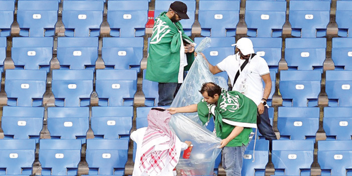 رسم مشجعون سعوديون حضروا مواجهة منتخبنا الوطني الأول أمام الأورجواي صورة حسنة تعكس مستوى الرقي الذي يمتلكونه , عندما قاموا وبمبادرة شخصية منهم بتنظيف المدرجات المخصصة للمشجعين السعوديين , إذ أحضروا أكياسا كبيرة لجمع المخلفات من علب المرطبات والأكواب وعلب المياه.