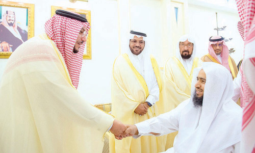 استقبل صاحب السمو الملكي الأمير الدكتور فيصل بن مشعل بن سعود بن عبدالعزيز أمير منطقة القصيم يوم أمس الأحد بمقر ديوان الإمارة بمدينة بريدة منسوبي إمارة منطقة القصيم يتقدمهم وكلاء الإمارة، والمديرون العامون ومديرو الإدارات ورؤساء الأقسام بديوان الإمارة، حيث تشرفوا بالسلام على سموه وتهنئته بمناسبة عيد الفطر المبارك وبداية الدوام الرسمي. وهنأ سموه الجميع بمناسبة عيد الفطر المبارك, كما بادلهم سموه التهنئة بمثلها متمنياً للجميع دوام العون والتوفيق، داعياً الله سبحانه وتعالى أن يتقبل من الجميع صيامهم وقيامهم، وأن يعيد على الجميع هذه المناسبة السعيدة والوطن وأبناؤه ينعمون بالأمن والاستقرار في ظل قيادته الحكيمة. وحث سموه منسوبي الإمارة على الجد والاجتهاد ومواصلة العمل بكل أمانة وإخلاص، في سبيل تطوير العمل والارتقاء بالخدمة المقدمة للمواطن والمقيم،