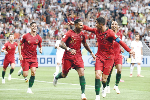 بلغ المنتخب البرتغالي لكرة القدم أمس الدور ثمن النهائي من كأس العالم 2018 في كرة القدم، بتعادله مع ايران 1-1 في سارانسك ضمن الجولة الثالثة الأخيرة من منافسات المجموعة الثانية لمونديال روسيا. وسجل ريكاردو كورايسما (45) هدف البرتغال، وكريم أنصاري فرد (3+90 من ركلة جزاء) هدف ايران. وأنهت البرتغال المجموعة في المركز الثاني بفارق الأهداف المسجلة خلف اسبانيا، وستلاقي في الدور ثمن النهائي الأوروغواي التي حسمت الاثنين صدارة المجموعة الأولى بفوزها على روسيا المضيفة 3-صفر. بور-ا