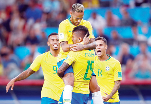 تأهل المنتخب البرازيلي بسهولة إلى دور 16 بعدما سجل باولينيو وتياجو سيلفا خلال الفوز 2-صفر على صربيا التي ودعت البطولة أمس. وأنهت البرازيل بطلة العالم 5 مرات المجموعة الخامسة في الصدارة برصيد 7 نقاط وستواجه المكسيك في الدور المقبل. واحتلت صربيا المركز الثالث برصيد 3 نقاط. افتتح باولينيو التسجيل في الدقيقة 36 عندما استقبل تمريرة متقنة من فيليب كوتينيو ليسدد الكرة من فوق الحارس فلاديمير ستويكوفيتش. وأضاع ألكسندر ميتروفيتش مهاجم صربيا فرصتين خطيرتين للتعادل من ضربتي رأس بالقرب من المرمى في الشوط الثاني قبل أن يحسم المدافع تياجو سيلفا الانتصار بضربة رأس بعد ركلة ركنية في الدقيقة 68 .