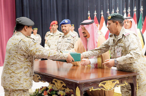 نيابة عن صاحب السمو الملكي الأمير محمد بن سلمان بن عبدالعزيز ولي العهد نائب رئيس مجلس الوزراء وزير الدفاع، رعى صاحب السمو الملكي الأمير فيصل بن بندر بن عبدالعزيز أمير منطقة الرياض حفل تخريج دورة الحرب التاسعة ودورة القيادة والأركان (44) أمس وذلك بمقر كلية القيادة والأركان.