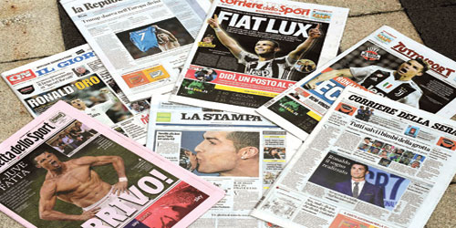 «رونالدو، تحقق الحلم» او «انييللي (رئيس يوفنتوس) حقق صفقة العمر»، الى عناوين أخرى أطلت بها الصحف الإيطالية الأربعاء معلنة قدوم النجم البرتغالي كريستيانو رونالدو الى صفوف يوفنتوس منتقلا من ريال مدريد مقابل 117 مليون يورو. وكتبت «لا ريبوبليكا» في صفحتها الأولى «كريستيانو رونالدو في يوفنتوس: حلم ب117 مليون يورو».