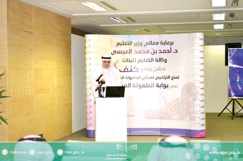 أكد معالي وزير التعليم الدكتور أحمد بن محمد العيسى على بذل الجهد في مجال رياض الأطفال والطفولة المبكرة ودعم المستثمرين للاستثمار في هذا المجال لأهمية رياض الأطفال في النظام التعليمي، مضيفاً أن الأمر يتطلب تكاتفنا لتذليل العقبات وتسهيل التوسع في افتتاح مدارس رياض الأطفال ومدارس الطفولة المبكرة سواء كان الاستثمار بالقطاع الخاص أو الدعم الحكومي المباشر، مشيراً إلى أنه من خلال المبادرات التي تطرح والتعاون المثمر، سنشهد توسع في هذا المجال ودعم للمستثمرين بشكل واضح. جاء ذلك خلال تدشين معاليه صباح أمس برنامج (كنف) الذي يهدف لدعم التوسع في مجال الطفولة المبكرة وزيادة نسبة الالتحاق برياض الأطفال بالإضافة إلى دعم الاستثمار في القطاع الخاص.