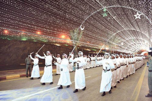 رعى صاحب السمو الملكي الأمير فيصل بن خالد بن عبدالعزيز أمير منطقة عسير رئيس مجلس التنمية السياحية بالمنطقة مساء أمس الأول حفل انطلاق فعاليات صيف خميس مشيط لهذا العام. وفور وصول سموه مقر الحفل في المركز الحضاري بالمحافظة كان في استقباله محافظ خميس مشيط خالد بن عبدالعزيز بن مشيط، وعدد من أعيان ومسؤولي المحافظة. واطلع سموه على مشاركات الجهات الحكومية في الفعاليات، ثم شاهد سموه عرضًا مرئيًّا بعنوان «ذاكرة موجان»، استعرض خلاله محافظة خميس مشيط في الماضي والحاضر. بعد ذلك دشَّن سمو الأمير فيصل بن خالد مهرجان خميس مشيط لهذا العام 1439 وفعالية الضوء واللون. وفي نهاية الحفل شاهد سموه والحضور أربع لوحات فنية بالتزامن مع إطلاق الألعاب النارية التي أضاءت سماء المحافظة.