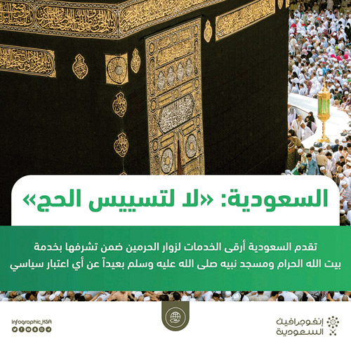 وليعلم العالم أجمع أن خدمة الحرمين الشريفين وخدمة ضيوف الرحمن حجاج بيت الله الحرام هي ميزة اختص بها المولى -عز وجل- حكومة خادم الحرمين الشريفين ومكنهم وشرفهم للقيام بها.