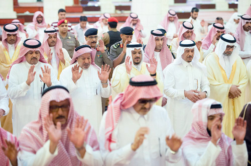 وأدّى الصلاة مع سموه صاحب السمو الملكي الأمير سلمان بن سعود بن عبدالعزيز وصاحب السمو الملكي الأمير الدكتور فيصل بن محمد بن سعود بن عبدالعزيز وصاحب السمو الملكي الأمير مشاري بن سعود بن عبدالعزيز وصاحب السمو الملكي الأمير سطام بن سعود بن عبدالعزيز وصاحب السمو الملكي الأمير فهد بن مساعد بن سعود بن عبدالعزيز وصاحب السمو الملكي الأمير نهار بن سعود بن عبدالعزيز وصاحب السمو الملكي الأمير حسام بن سعود بن عبدالعزيز وصاحب السمو الملكي الأمير مصعب بن سعود بن عبدالعزيز وصاحب السمو الملكي الأمير جلوي بن سعود بن عبدالعزيز وصاحب السمو الملكي الأمير فيصل بن سعود بن عبدالعزيز وصاحب السمو الملكي الأمير يوسف بن سعود بن عبدالعزيز وعدد من أصحاب السمو الأمراء وكبار المسؤولين من المدنيين والعسكريين وجمع من المواطنين.