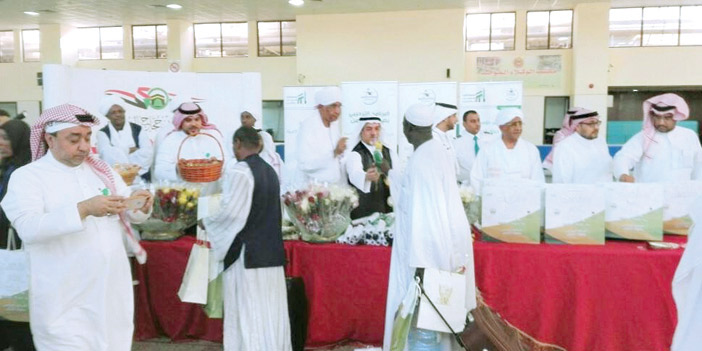 وتم خلال الاستقبال تقديم الهدايا الرمزية للحجاج من وزارة الحج والعمرة ومكتب الوكلاء الموحد ومؤسسة مطوفي الدول العربية.
