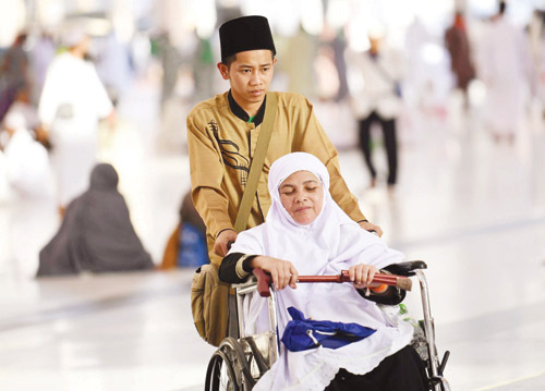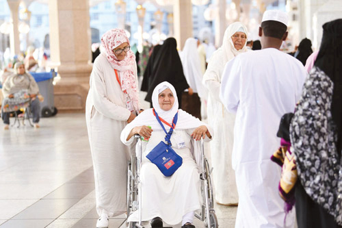 وقد شوهد زائرون من مختلف الجنسيات, وهم يقدمون أشكالاً من الرعاية والعناية لوالديهم, كمساعدتهم في الوصول إلى أبواب المسجد النبوي, ودفعهم بالعربات المتنقلة في ساحات المسجد, وتهيئة السبل لراحتهم ومساعدتهم ليؤدوا فريضة الحج.