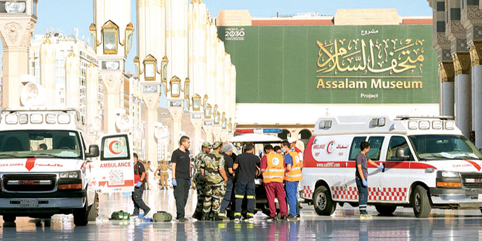 وتعمل هيئة الهلال الأحمر السعودي على تسخير كافة الإمكانات والطاقات اللازمة لتأمين سلامة الزوار وتقديم كافة الخدمات الإسعافية لضيوف الرحمن زوار المسجد النبوي الشريف، من خلال أكثر من 555 موظفًا، وأكثر من 37 مركزاً ثابتاً وموسمياً موزعة في نطاق المدينة المنورة داخلها وخارجها.