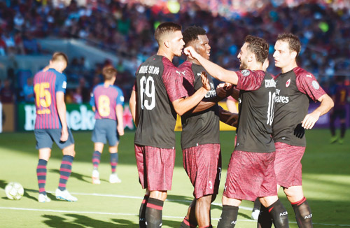 حققت المواهب الشابة في ريال مدريد الإسباني فوزاً ساحقاً على يوفنتوس الإيطالي 3-1 من دون النجم السابق البرتغالي كريستيانو رونالدو المنتقل إلى الأخير، وفاجأ ميلان الإيطالي العملاق الكاتالوني برشلونة 1- صفر ضمن الكأس الدولية للأبطال في كرة القدم. في المباراة الأولى في لاندوفر بولاية ماريلاند الأميركية والتي غاب عنها رونالدو المنتقل مؤخراً من ريال مدريد إلى يوفنتوس، نجح ماركو اسينسيو في قيادة ريال مدريد الى الفوز في الشوط الثاني بعد ان سجل له الهدفين الاخيرين (47 و56). وكان يوفنتوس تقدم بالنيران الصديقة عبر المدافع الدولي الاسباني داني كارفاخال الذي سجل خطأ في مرمى فريقه عندما حاول اعتراض كرة خطرة فتحولت الى الشباك (12)، لكن الويلزي غاريث بايل ادرك التعادل قبل نهاية الشوط الأول (39). ولا يزال رونالدو (33 عاماً) المنتقل من الفريق الملكي إلى فريق «السيدة العجوز» مطلع يوليو مقابل 100 مليون يورو، في اجازة بعد مشاركته مع منتخب بلاده في مونديال 2018 في روسيا، حيث خرج من الدور الثاني (ثمن النهائي) على يد الأوروغواي 1-2. ولم يمنع هذا الغياب يوفنتوس من افتتاح التسجيل بمساندة من كارفاخال الذي حاول قطع كرة خطرة أرسلها إلى الأمام البرتغالي جواو بدرو كانسيلو فاعترضها محاولاً إبعادها لكنها تحولت إلى شباك الكوستاريكي كيلور نافاس (12). وسرعان ما أمسك ريال مدريد، الفائز بالنسخ الثلاث الأخيرة من دوري أبطال أوروبا بقيادة مدربه السابق الفرنسي زين الدين زيدان، بزمام الأمور واخذ المبادرة الهجومية، وأدرك التعادل بقذيفة لبايل من حافة المنطقة (39). وفي الشوط الثاني، تابع رجال المدرب الجديد لريال جولين لوبيتيغي الذي اشرك معظم لاعبي الجيل الجديد، سيطرتهم، وتقدموا بعد لعبة جماعية بدأها الوجه الجديد الشاب البرازيلي فينيسيوس جونيور (18 عاماً) المنضم حديثاً إلى صفوف الملكي، وانهاها اسينسيو بنجاح في الشباك بعد مرور دقيقتين فقط. وبعد 9 دقائق، نجح اسينسيو في تسجيل الثنائية وتأكيد فوز ريال مدريد بعد ان تلاعب بأكثر من مدافع ثم خدع الحارس البولندي فويتشيتش شيتشيسني (56). وينهي ريال مدريد مبارياته في مسابقة الكأس الدولية التي تجمع أبرز الأندية الأوروبية خلال جولاتها الاستعدادية للموسم الجديد، في أماكن متفرِّقة من أوروبا، الولايات المتحدة وسنغافورة، الثلاثاء المقبل بلقاء روما الإيطالي في نيوجيرزي، بعد أن خر المباراة الافتتاحية أمام مانشستر يونايتد الإنكليزي 1-2 .