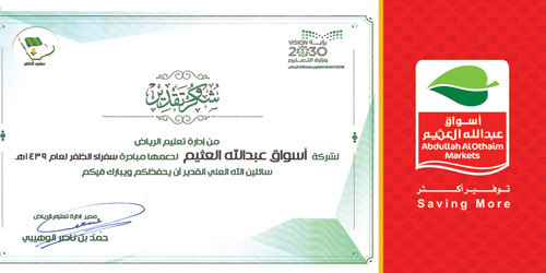 كرَّمت وزارة التعليم، ممثلة بإدارة تعليم منطقة الرياض شركة أسواق عبدالله العثيم لمشاركتها الفاعلة بدعم مبادرة "سفراء الظفر" للعام 1439 هـ ، لاستقبال أبناء وبنات الشهداء ومصابي الحد الجنوبي من إدارات التعليم في منطقتي جازان ونجران وذويهم، حيث استضافتهم في معهد أكاديمية العثيم للتدريب والتطوير ضمن برنامج اليوم المفتوح في الأكاديمية، وتعرفوا فيه على الفرص الوظيفية في قطاع بيع التجزئة من خلال فيلم تعريفي، وتلقوا تدريبات نظرية وعملية على وظيفة محاسب المبيعات، لتقدم لهم بعد ذلك شهادات اجتياز الدورة من قبل إدارة الأكاديمية، قبل أن يختتم اليوم بزيارة ترفيهية للأبناء والبنات إلى مدينة الثلج في العثيم مول الربوة، وجاء التكريم على هامش حفل تدشين المبادرة التي تقام للعام الرابع على التوالي والتي احتضنها مركز الملك عبدالعزيز التاريخي بالرياض، بحضور وكيل وزارة التعليم، الدكتورة هيا العواد، ومدير عام الإدارة العامة للتعليم بمنطقة الرياض بالإنابة الأستاذ عبدالله بن سعد الغنام، وعدد من القيادات التربوية والتعليمية وضيوف الحفل من القطاعات الأمنية والعسكرية. من جانبه، أكد الرئيس التنفيذي لشركة أسواق عبدالله العثيم الأستاذ عبدالعزيز عبدالله العثيم أن الشركة تحرص على دعم أبناء الشهداء والأبطال المرابطين على الحد الجنوبي، نظير ما يقدمه آباؤهم من تضحيات كبيرة في الذود عن وطننا الغالي، ويأتي ذلك إيمانًا من الشركة بدورها في المسؤولية الاجتماعية وواجباتها الوطنية في ظل رعاية حكومة خادم الحرمين الشريفين الملك سلمان بن عبدالعزيز وولي العهد الأمين صاحب السمو الملكي الأمير محمد بن سلمان، مشيراً إلى أن الشركة تعتبر دعم مثل هذه البرامج والمبادرات جزءًا من أعمالها، وفي أعلى هرم أولوياتها.
