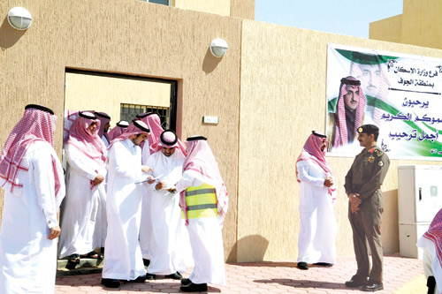 واستمع سمو أمير منطقة الجوف من المدير العام لفرع الوزارة بمنطقة الجوف الأستاذ فهيد بن مطلق الشمري إلى شرح عن مشروع إسكان محافظة القريات الذي يحتوي على عدد 255 وحدة سكنية متكاملة الخدمات من بنية تحتية ومرافق خدمية.