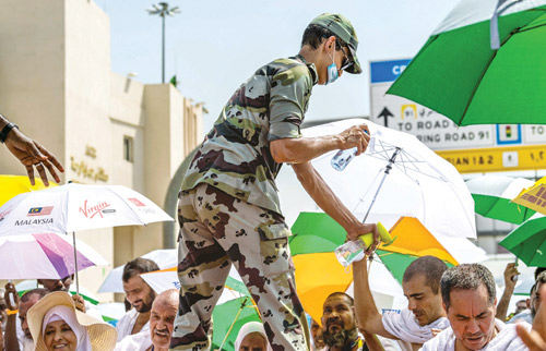 ولم يقتصر دور رجال الأمن على الحفاظ على الأمن، وتيسير حركة المرور، بل ظهر جلياً في تسابقهم على مساعدة الكبير، والعناية بصغار السن، ومد اليد للمحتاجين، وإرشاد التائهين، وسقاية ضيوف الرحمن بالماء والعصائر، ورش رذاذ المياه الباردة فوق رؤوس ضيوف الرحمن عند اشتداد حرارة الشمس للتخفيف من وطأتها، والتخفيف عنهم قدر المستطاع.