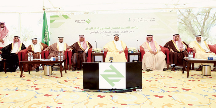 رعى صاحب السمو الملكي الأمير محمد بن عبد الرحمن بن عبدالعزيز رئيس مجلس هيئة تطوير مدينة الرياض بالنيابة، أمس حفل تكريم الطلاب المشاركين في برنامج التدريب الصيفي ضمن مشروع النقل العام بمدينة الرياض للعام 1439هـ الذي نظمته الهيئة، ظهر الأحد 22 ذو الحجة 1439ه، بقصر طويق في حي السفارات، واشتمل على تكريم 149 طالباً وطالبة ينتمون إلى 11 جامعة سعودية، شاركوا في البرنامج لهذا العام.