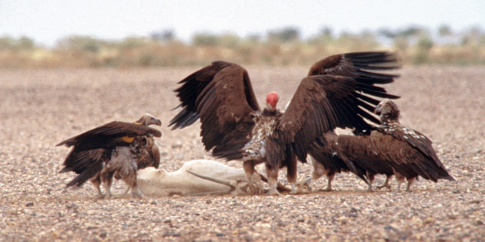 وصلنا المحمية مع إشراقة الصباح، واتجهنا لداخل المحمية لمشاهدة المها العربي والظباء والنعام، خلالها ناقشني أخي نشأت عن ورقتي العلمية التي تتحدث عن تقييم برنامج التوطين بدول الانتشار للمها العربي، فالأردن من أوائل الدول التي أقامت برنامج للمها العربي بمحمية الشومري، لذا تركز حديثنا عن معوقات التوطين للأنواع الفطرية، وبينما نحن كذلك نسير في منطقة المحتفر وسط غرب محمية الإمام، إذا بمنظر مهيب جدا لنسور تَجَمْعتْ على أحد ذكور المها العربي النافقة، ما عزز من جمال المنظر، خاصة أن هناك أربعة أنواع من النسور هي: نسر الأذون، والنسر الأسمر، والنسر المصري، وعدد بسيط من النسور السوداء المهاجرة، بالإضافة لعدد من عقبان السهول.. لا أدري كم من الوقت بقينا ننظر لهذه النسور وهي تتهافت على الجيفة، كل واحد منها يود أن يحصل على نصيبه مما أفاء الله له، وتجسد أمامي ما كنت قرأته عن كيف أن شكل النسور ووجود الريش بمنطقة الرأس والرقبة وقوة المنقار يجسد أهمية في تقليل التنافس بين هذه الطيور، فنسر الأذون والنسر الأسود يبدأ الريش تقريباً من منطقة الرقبة، أما منطقة الرأس وجزء من الرقبة تخلو من الريش، كما أنهما يستطيعان بمناقيرهما القوية القاطعة تمزيق الجلد والتغذي عليه وعلى الأنسجة الداخلية منها والعظام، أما النسر الأسمر فرقبته الطويلة الخالية من الريش، وتغذيته فقط على الأنسجة الناعمة يجعله يتوغل برأسه داخل الحيوان النافق للوصول للأنسجة الناعمة، لذلك فهو يحتاج إلى رقبة طويلة للوصول إلى هذه الأنسجة، ومنطقة خالية من الريش بالرأس والرقبة حتى لا تعلق السوائل والدماء المتعفنه على الريش، فالزغب يتساقط فلا يصل لجلد الرقبة والرأس..