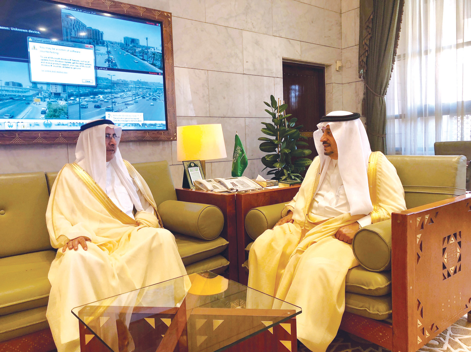 استقبل صاحب السمو الملكي الأمير فيصل بن بندر بن عبدالعزيز أمير منطقة الرياض بمكتبه بقصر الحكم أمس صاحب السمو الأمير خالد بن عبد العزيز بن عيّاف وزير الحرس الوطني الذي قدم للسلام على سموه.
