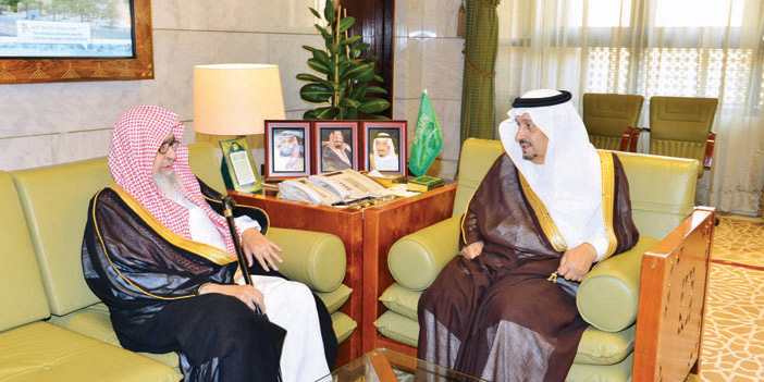 استقبل صاحب السمو الملكي الأمير فيصل بن بندر بن عبدالعزيز أمير منطقة الرياض في مكتبه بقصر الحكم أمس عضو هيئة كبار العلماء وعضو اللجنة الدائمة للإفتاء الشيخ صالح بن فوزان الفوزان، الذي قدم للسلام على سموه.