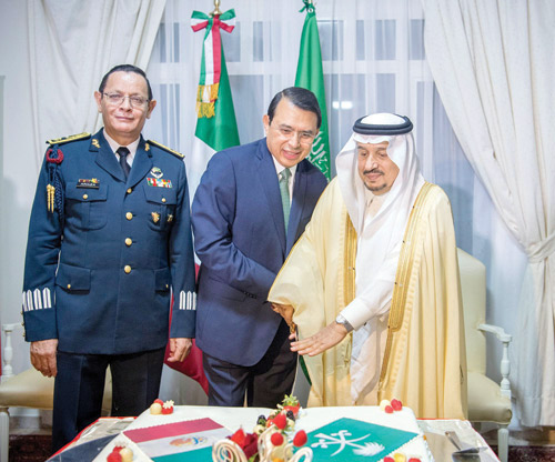 كما شرّف صاحب السمو الملكي الأمير فيصل بن بندر بن عبدالعزيز أمير منطقة الرياض مساء أمس، حفل سفارة جمهورية المكسيك بمناسبة ذكرى اليوم الوطني لبلادها, وذلك بقصر طويق بحي السفارات.