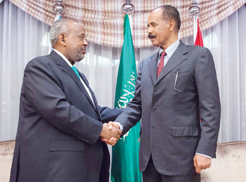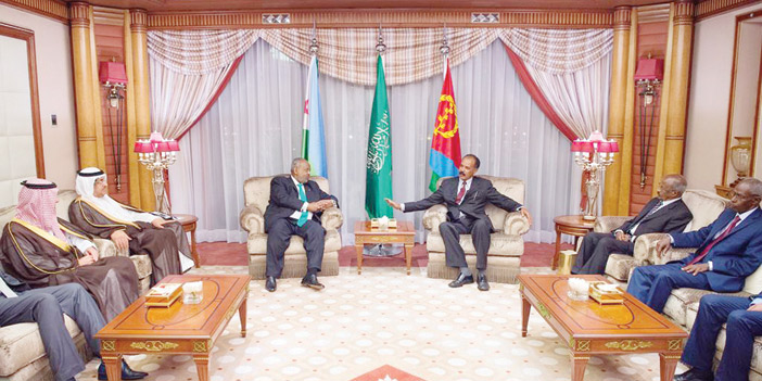 استجابة لدعوة خادم الحرمين الشريفين الملك سلمان بن عبد العزيز آل سعود -حفظه الله- عقد رئيس جمهورية جيبوتي إسماعيل عمر جيله ورئيس دولة إريتريا أسياس أفورقي لقاءً تاريخياً في مدينة جدة بعد 10 أعوام من القطيعة، وذلك بحضور معالي وزير الدولة وعضو مجلس الوزراء الدكتور عصام بن سعد بن سعيد ومعالي وزير الخارجية الأستاذ عادل بن أحمد الجبير.